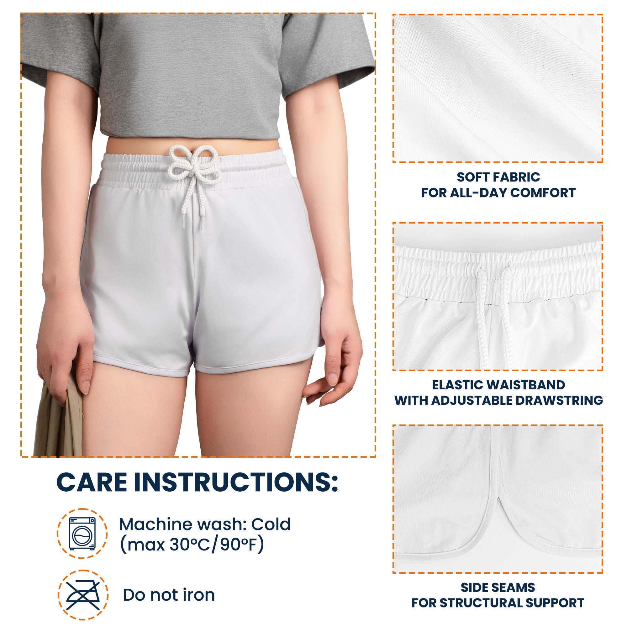 + Side Seams for Structure: Designed with reinforced side seams for added structural support, helping maintain the shape and durability of the shorts through repeated wear and washing. - Care Instructions: Machine wash cold (max 30°C / 90°F), do not iron.