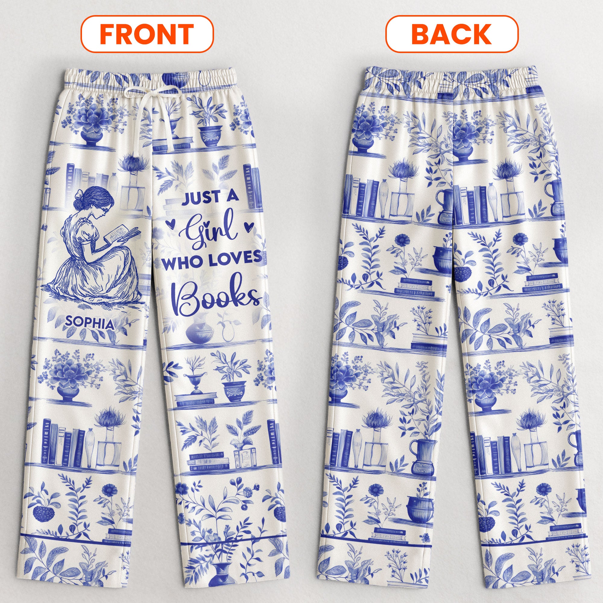 Just a Girl Who Loves Books Toile De Jouy – Personalized Satin Pajama Pants