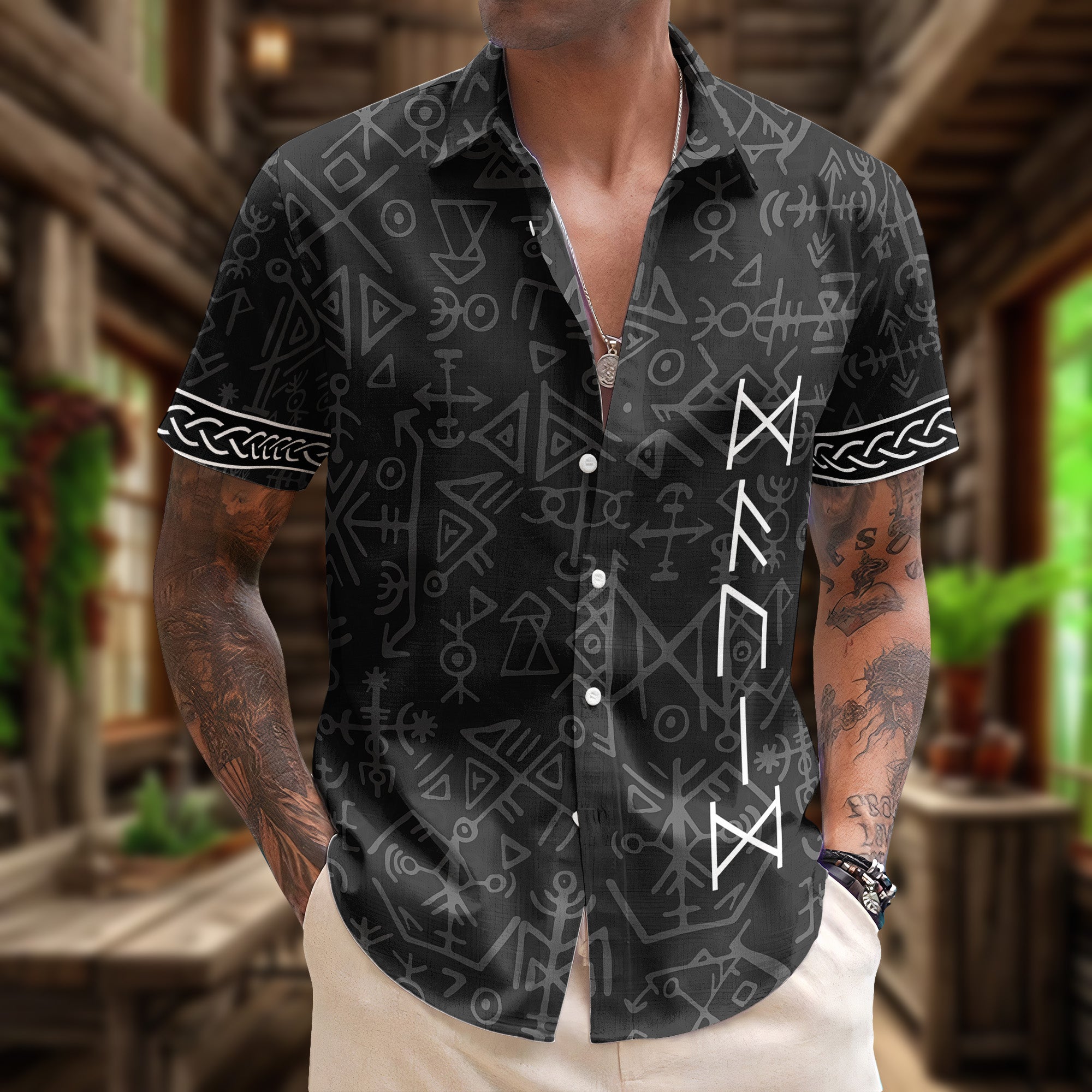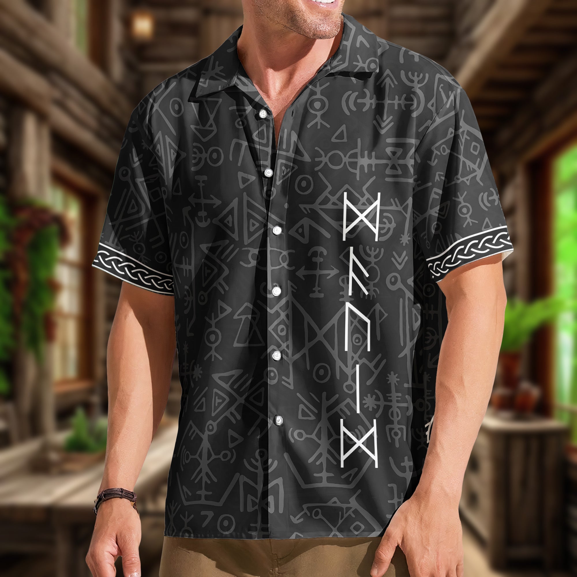 Indulge in the ethnic charm with our Nordic-inspired Personalized Hawaiian Shirt. Titled “Name In Viking Runes’ this truly is a remarkable blend of Norse mythology and modern Hawaiian style. Perfect for self-gifting or surprising that special ‘him’ in your life, this shirt becomes more than just a piece of clothing, it’s a bond that unites. The personalized touch is an impressive reflection of your taste and thoughtfulness. This gift, unique and intriguing, is perfect for birthdays, Christmas, anniversaries, or any occasion that calls for something special.