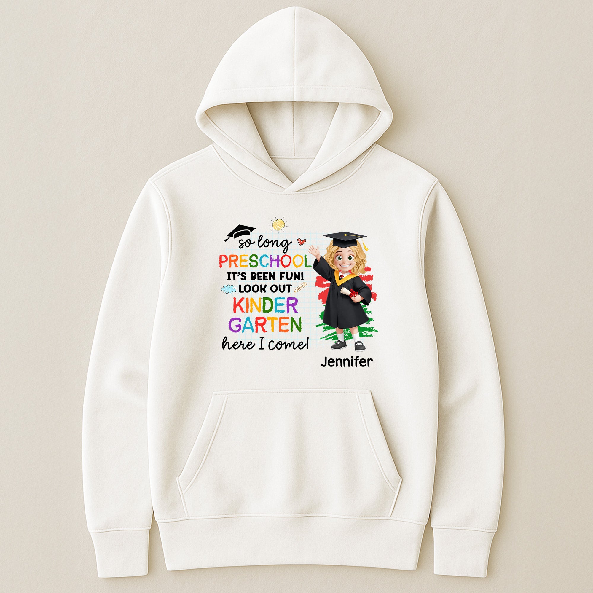 Perfect for graduation ceremonies, birthdays, Christmas, anniversaries, or any occasion you want to celebrate this significant step in education. It conveys the unspoken excitement of saying goodbye to preschool and embracing kindergarten. A picture might be worth a thousand words but seeing your child wear this shirt says so much more. So why wait? Give your child an unforgettable token of their preschool graduation. Make the big day even more special by gifting them a Pre K Graduation – Personalized Shirt. It’s more than just a gift, it’s a keepsake. Let’s create memories together. Purchase now!